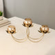 Bring warmth and elegance to your home with this beautifully crafted Iron and Glass Votive Candle Holder, designed to be both functional and decorative. This piece features three amber-colored glass votive cups, each shaped like a delicate flower bud and nestled within gold-toned metal petals that mimic a blooming lotus....