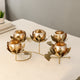 Illuminate your space with timeless elegance using this Iron and Glass Votive Candle Holder, a stunning centerpiece designed to elevate any room or festive occasion. Featuring three globe-shaped glass votive cups cradled in lotus-inspired golden metal petals, this piece blends traditional charm with modern sophistication. The symmetrical iron frame showcases...